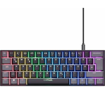 Gute Gaming-Tastaturen müssen nicht groß sein. Das beweist der Hersteller Trust mit seinem Modell GXT 867 Acira. Die Tastatur kommt mit einem auf das nötigste reduziertem Layout und ist dadurch unglaublich kompakt. Sie lässt sich per USB mit dem Computer verbinden und ihr Gehäuse wirkt äußerst robust. Die Schalter sind sehr reaktionsschnell, was insbesondere für kompetitive, schnelle Spiele von Bedeutung ist. Eine schöne RGB-Beleuchtung mit vielen Funktionen rundet das Paket ab. Bedauerlicherweise ist das Geräusch, welches die Tasten beim Tippen von sich geben, eher unangenehm und recht laut. Außerdem ist die Software nicht gerade übersichtlich und kann dadurch leicht verwirrend wirken.