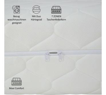 Die Nox Basic von Tulena ist eine erschwingliche 7-Zonen Matratze, die laut Hersteller Ihre Wirbelsäule unterstützt und kompakt zusammengerollt werden kann. Dadurch eignet sie sich unter anderem für Ihr Gästebett oder den Wohnwagen bzw. als Option für Einsteiger, die keine Unsummen investieren wollen. Der 12 cm hohe Taschenfederkern wird von Komfortschaum ummantelt, den Bezug können Sie bei bis zu 40 Grad waschen. Je nach Vorliebe haben Sie eine weichere und eine härtere Seite zur Verfügung, je nach Modell von H1/H2 bis H4/H5. Die Matratze wird in allen gängigen Größen angeboten und kommt bei Rezensenten sehr gut an. Vereinzelt wird ein starker Eigengeruch zu Beginn bemängelt. Für Anspruchsvollere ist die Tulena auch in einer Comfort und Comfort Plus Variante erhältlich.