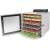 Das Dörrgerät TurboWave BIO von Turbotronic ist mit Metallgittern auf fünf Ebenen ausgestattet, was in dieser Preisklasse kein Standard ist. Allerdings liegen die Streben ein wenig zu weit auseinander. Für das Verarbeiten von kleinen Lebensmitteln ist daher der Einsatz einer Dörrfolie notwendig. Die Temperatur lässt sich stufenlos von 50 bis 80 Grad einstellen und beginnt damit in einem vergleichsweise hohen Bereich. Wenn Sie Obst und Gemüse in Rohkostqualität dörren möchten, ist das zu hoch. Dafür eignet sich das Gerät aufgrund der vergleichsweise hohen einstellbaren Temperatur von 80 Grad gut für Fleisch. Ein weiterer Pluspunkt sind der Timer – und der Preis. Rund 50 Euro kostet das Dörrgerät und bietet dafür viele gute Eigenschaften. Mehr Platz bietet etwa der Meykey Dörrautomat.