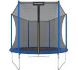 Sicher und stabil scheint es zu sein, das große Gartentrampolin. Es besitzt 72 Federn und erlaubt damit hohe und kraftvolle Sprünge. Die Kunden sind überwiegend zufrieden, bemängeln aber die Verarbeitungsqualität einzelner Komponenten. Mancher musste gar nachbohren oder das Netz flicken. Bei einem Preis von rund 229 Euro sollten solche Mängel nicht auftreten.