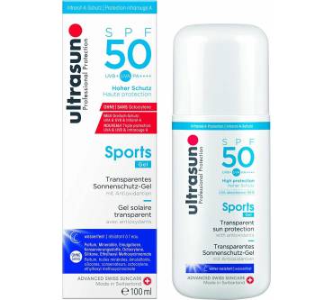 Das Ultrasun „Sports Gel“ mit dem Lichtschutzfaktor 50 ist deutlich teurer als viele Sonnenschutzmittel aus dem Drogeriemarkt. Laut Hersteller ist es ein schnell einziehendes, nicht fettendes, wasserfestes Produkt mit optimalem Sonnenschutz und besonderer Schweißresistenz. Kundenrezensionen loben die Haltbarkeit bei schweißtreibendem Sport und auch einige Nutzer mit einer Sonnenallergie oder Sonnenakne sind überzeugt. Das Sonnenschutz-Gel enthält keine Konservierungsstoffe und wird in den Mengen 100 ml und 200 ml verkauft. Laut „Laufzeit & Condition“ ist es sehr ergiebig. Der Hersteller verzichtet auf PEG-/PPG-Emulgatoren, die aus Erdöl hergestellt werden und die Konsistenz einer Creme verbessern sollen, sowie auf die umweltbelastenden Lichtschutzfilter Octocylene und Ethylhexyl methoxycinnam.