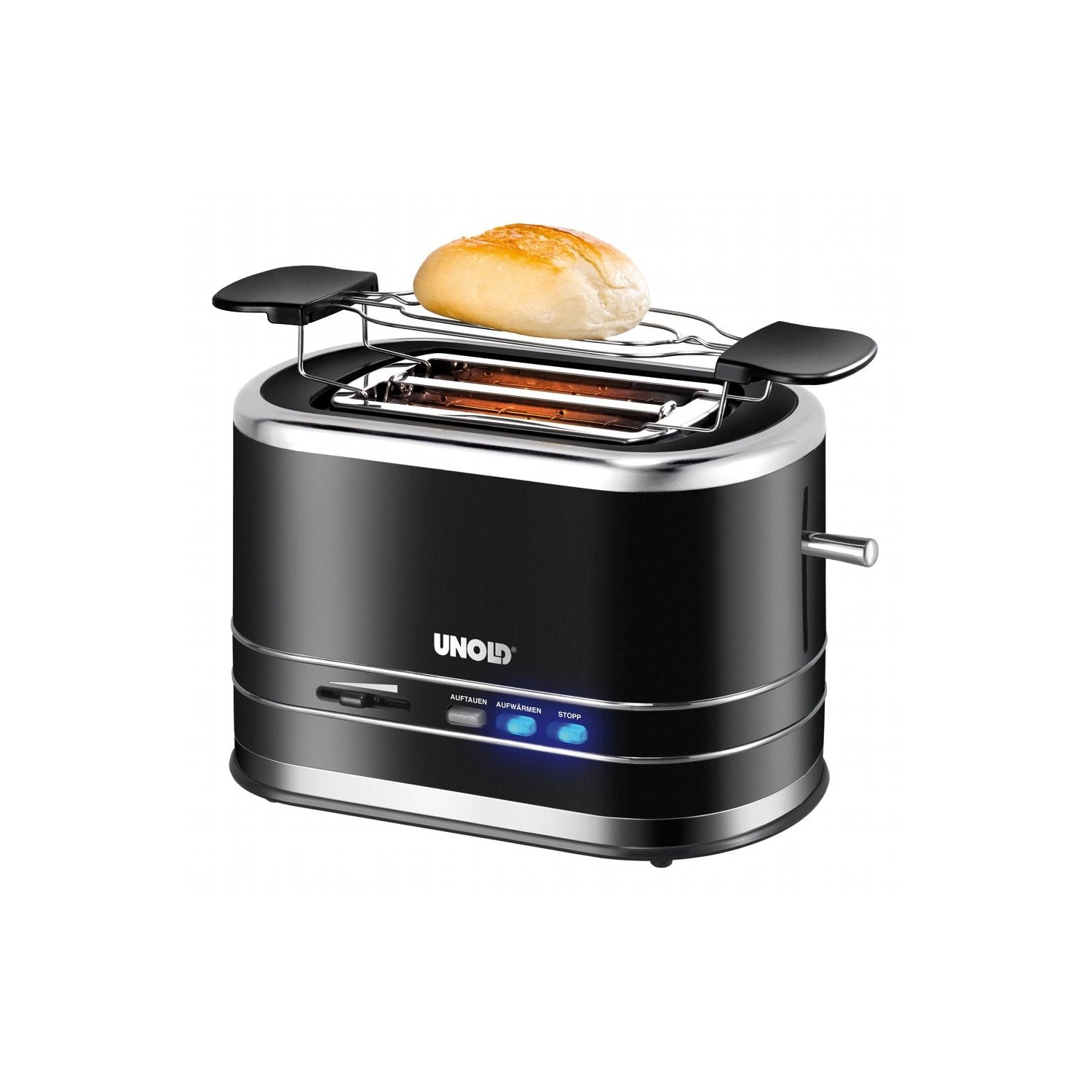 Bei nicht wenigen Toastern ist der integrierte Aufsatz ein wahrer Jammer – viel zu instabil, viel zu klein. Ein schönes Beispiel dafür, dass man es auch besser machen kann, ist der Toaster 38505 des deutschen Herstellers Unold Elektro. Der Aufsatz besteht nämlich nicht, wie häufig üblich, aus einer dünnen Stabkonstruktion auf wackeligen Beinen, sondern ist vergleichsweise stabil und zudem breit genug, um größere Gebäckstücke locker aufzunehmen, ohne dass diese vorher genau ausbalanciert werden muss, damit sie sicher liegen bleiben und nicht beim kleinsten Schubser gegen den Tisch herunterfallen.