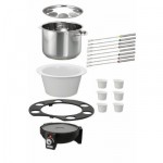 Die Geschmäcker sind bekanntlich verschieden, und gerade innerhalb von Familien kommt es öfter vor, dass unter den einzelnen Mitgliedern Vertreter aller drei grundlegenden Fondue-Arten anzutreffen sind. Steht in diesem Fall das Fondue-Set von Unold Elektro im Küchenschrank, können mit nur einem einzigen Gerät alle drei Lieblingsfondues im Wechsel auf den Tisch gebracht werden: Im Edelstahltopf wird das Fleisch-Fondue mit Öl oder Bouillon zubereitet, während der Keramik-Topf ideal für das Käse- und Schoko-Fondue ist. Überaus praktisch sind auch die kleinen Töpfe aus Keramik, in denen sich stilsicher Soßen oder kleinere Beilagen um das Fondue drappieren lassen – schließlich handelt es sich bei dem Gerät laut Hersteller um eine „Designer-Fondue“, was wiederum den Produktnamen ausreichend erklärt.