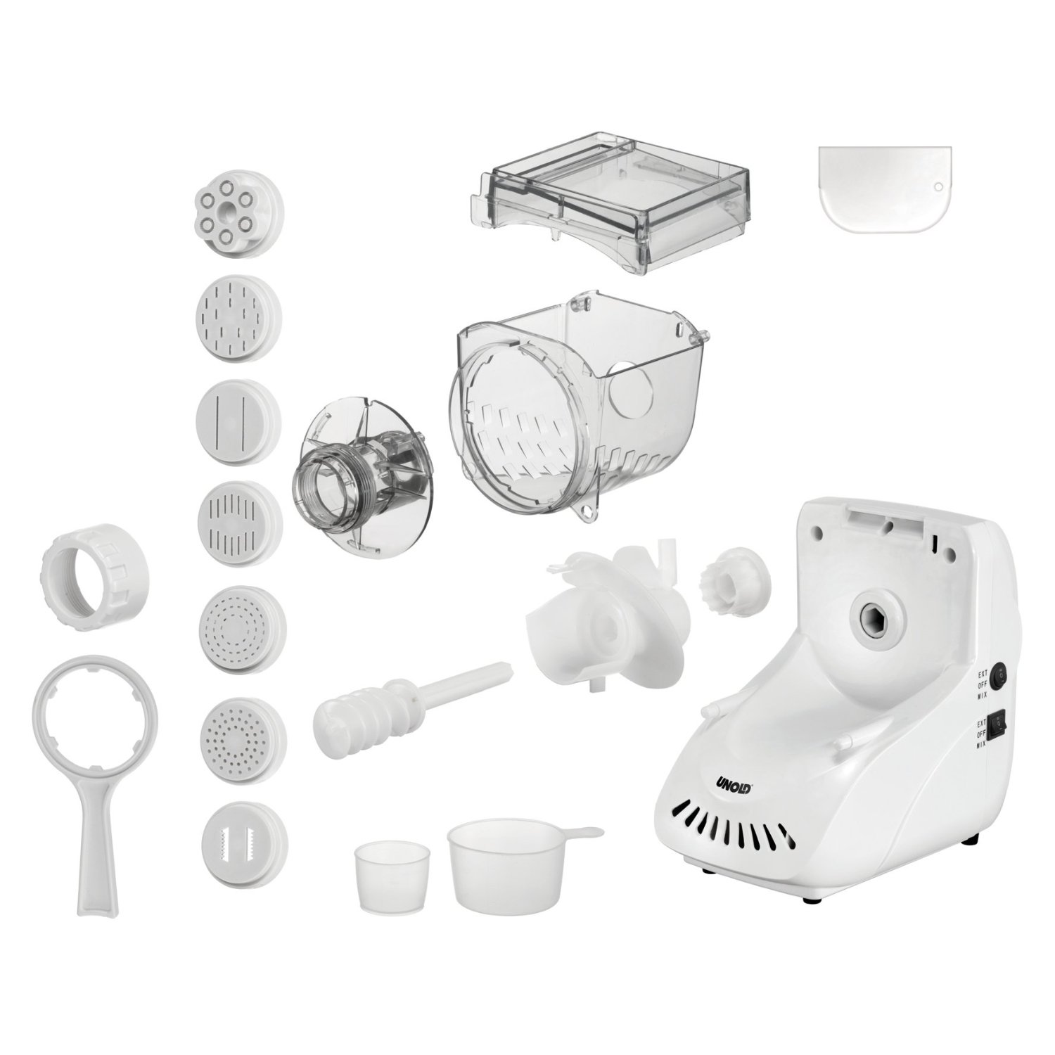 Auf den ersten Blick ähnelt die Maschine von Unold einer Kombination aus einer normalen Küchenmaschine für diverse Teige sowie einem Fleischwolf. Und genau dies ist sie im Grunde genommen auch. Das Verfahren ist kinderleicht. In den Rührbehälter werden alle Zutaten eingefüllt, die Maschine gestartet, und sobald der Teig fertig ist, wird er über eine der insgesamt sieben Matritzen in Form fertiger, frischer Nudel ausgepresst. Anschließend müssen die Nudeln nur noch in heißem Wasser kurz aufgekocht werden – fertig. Einfacher als mit der Unold lassen sich frische Nudeln nicht selbst herstellen, wobei über