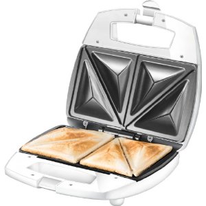 Kurzum: Der Sandwich-Toaster ist recht spartanisch ausgestattet und konzentriert sich ausschließlich auf die Funktion, zwei Toastscheiben (die nicht allzu dick belegt sein sollten) zu überbacken und dabei gleichzeitig je in zwei Hälften zu teilen. Die Handhabung ist simpel, außerdem kann er stehend aufbewahrt werden. Wer nicht mehr von einem Sandwich-Toaster erwartet, wird sich darüber freuen, dass der Unold kein Loch in die Haushaltskasse schlägt (Amazon, rund 18,-). Als Gegenwert wird allerdings nur das Notwendigste an Funktionalität für die Zubereitung von XXL-Toasts geboten.
