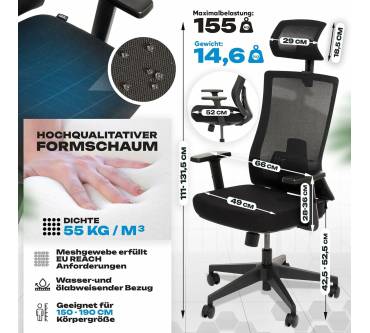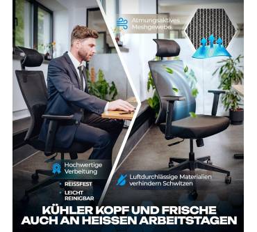 Valkenstol bietet den Bürodrehstuhl M3 mit drei Ausstattungspaketen an. Wählbar sind Versionen mit Sitztiefeneinstellung und dreifach arretierbaren Armlehnen. So passen Sie den Stuhl für entlastenden Komfort exakt an Ihre Körpergröße an. Immer an Bord ist eine Netzrückenlehne, die angenehm belüftet und stützt, sowie eine Lordosenstütze. Diese fördert eine aufrechte, wirbelsäulengerechte Haltung. Zur Standardausstattung gehört außerdem eine Kopfstütze. Die Konstruktion macht den Nutzern zufolge einen haltbaren Eindruck. Sie hält laut Hersteller bis zu 150 Kilogramm stand – das ist weit mehr als der Standard. Mit dem Komfort zeigen sich die Besitzer ebenfalls zufrieden und loben schließlich den einfachen Aufbau. So schmälert einzig die fehlende Angabe der Bewegungsmechanik den guten Eindruck. Vermutlich ist eine Wipptechnik integriert, die vor allem bei längerer Nutzung eher verspannt, als positive Effekte bietet. Der Grund: Sitzfläche und Rückenlehne sind starr miteinander verbunden, sodass sich Ihr Körper beim Zurücklehnen nicht streckt. Suchen Sie eine Lösung für gelegentliche Arbeit im Home-Office ist diese für einen Preis von rund 230 Euro empfehlenswert.