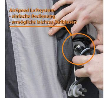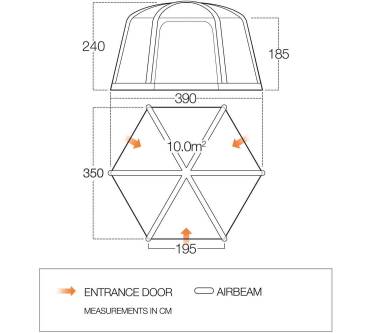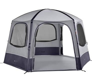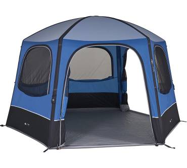 Das Airhub Hex von Vango ist kein typisches Familienzelt, sondern wird zum Beispiel als Vorzelt vor einem Wohnmobil befestigt oder als Gartenpavillon genutzt. Durch die hohe Raumhöhe können auch erwachsene Personen in dem Zelt stehen. Der Aufbau ist dank eines aufblasbaren Luftgestänges unkompliziert und soll nach Angaben des Herstellers nicht mehr als fünf Minuten dauern. Eine Pumpe wird sogar mitgeliefert. Der Charakter eines Aufenthaltsraumes wird durch drei große Fenster und drei große Eingänge betont. An den Fenstern halten Moskitonetze unerwünschte tierische Besucher fern. Die Zeltplane und die herausnehmbare Bodenplane lassen keine Nässe bei moderaten Regengüssen eindringen. Alle Nähte sind geklebt und bilden somit bei Feuchtigkeit keine Schwachstelle.