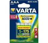 Die Varta Rechargeable Accu 800 mAh (AAA) sind wiederaufladbare NiMH-Akkus mit einer Kapazität von 800 mAh und einer Spannung von 1,2 V. Sie sind vorgeladen und sofort einsatzbereit. Dank der 'Ready To Use'-Technologie verfügen sie über eine geringe Selbstentladung und behalten nach 12 Monaten noch 70 % ihrer Kapazität. Die Akkus enthalten 25 % recyceltes Material und sind mit allen Ladegeräten und Geräten kompatibel.