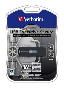 Der USB-Stick Store 'n' Go Executive Secure von Verbatim schreibt Datenschutz groß. Der Speicherstick verschlüsselt die auf ihm abgelegten Daten mit einer 256-bit AES-Hardware-Verschlüsselung, die so ziemlich als unknackbar gilt. Außerdem besteht er, bevor man Zugang zu den Daten erhält, auf die Eingabe eines Passwortes. Die Passworteingabe selbst zeigt sich dabei recht kulant und verzeiht dem Anwender bis zu 20 mal die Eingabe eines falschen Kennwortes. Doch beim 21. Versuch ist Schluss und sie löscht einfach die auf dem USB-Stick sich befindenden Daten.