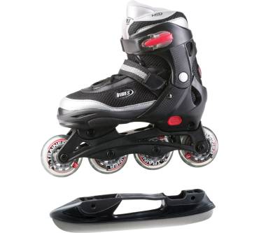 Es ist eine richtig gute Idee, Inlineskates auf den Markt zu bringen, die sich im Winter zu Schlittschuhen umfunktionieren lassen. Zumal sich die Boots auf Kufen inzwischen kaum noch von denen auf Rollen unterscheiden. So kommen auch die Vibes Kinder Multiskates 2in1 mit typischen Semi-Soft-Inlinerboots, die sich mit Hilfe des Schnellschnürsystems und der Schnallen gut anpassen lassen. Die Inliner-Iceskates sind in den Größen 28-31, 32-35 und 36-39 erhältlich.