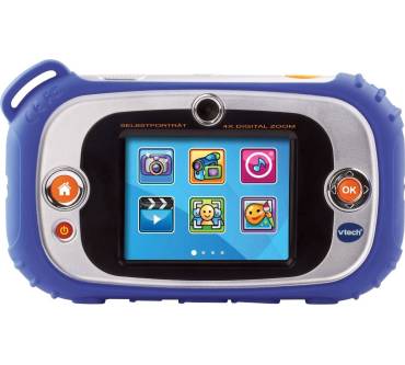 Das Multifunktionsgerät Kidizoom Touch von Vtech ermöglicht das Schießen von Fotos, das Drehen von Videos, das Spielen kleiner Games sowie das Hören von MP3-Musikdateien. Besonders der im Vergleich zu anderen Kinderkameras große Monitor mit einer Bilddiagonalen von drei Zoll sticht hervor.