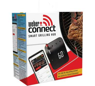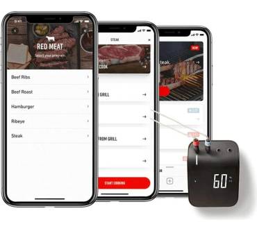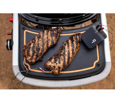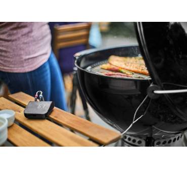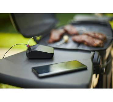 Das Grillthermometer von Weber stellt ein smartes Bindeglied zwischen einem beliebigen Grill und dem Smartphone dar. Das Thermometer kommt inklusive je eines Fühlers für die Fleisch- und die Umgebungstemperatur. Insgesamt können Sie vier Temperatursensoren anschließen. Die Temperatur wird über ein Display angezeigt. Mit Spannung versorgt wird das Thermometer über einen integrierten Akku, der sich über einen USB-Anschluss wiederaufladen lässt. Verbindung mit dem Smartphone nehmen Sie entweder über WLAN oder Bluetooth auf. Die für Android und iOS erhältliche App zeigt nicht nur die aktuellen Temperaturen an, sondern gibt auch Empfehlungen zum Garen des Grillguts. Wenn Sie sich noch nicht so lange mit dem Grillen beschäftigen, finden Sie auch eine schrittweise Anleitung von der Vorbereitung bis zum Servieren. Befestigen können Sie das Thermometer mithilfe des Magnethalters an jeder magnetischen Metallfläche.