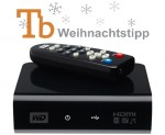 Die eigene Mediensammlung lässt sich mit dem WD TV dank Unterstützung externer Festplatten im Prinzip endlos erweitern. Besonders interessant ist das, weil der Preis für externe Datenspeicher momentan im freien Fall ist. Bei amazon wird der WD TV zur Zeit für rund 100 Euro gelistet. Ein echter Weihnachtstipp!