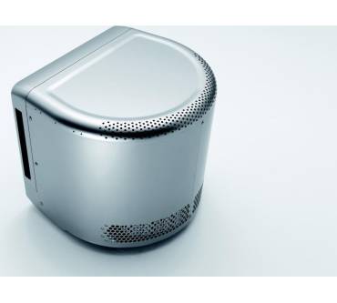 Der Vorteil des an tragbare Klein-Fernseher der 1980er Jahre erinnernden Designs liegt in den Außenmaßen von gerade einmal etwa 40 x 36 Zentimetern. Bei ebenfalls 36 Zentimetern Gerätehöhe passt der Ofen damit auf Stellflächen, für die viele der meist kastenförmigen Konkurrenten viel zu groß sind. Unter der seitlich öffnenden Tür ist an der Gerätefront eine Bedienblende mit Display untergebracht. An den links und recht davon angebrachten Sensor-Tasten können Sie mit sanftem Fingerdruck die Einstellungen vornehmen.