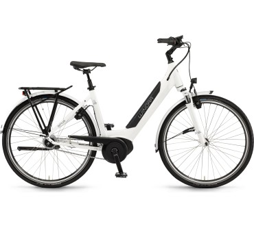Mit dem iN8 wirft Winora ein sauber ausgestattetes City-Pedelec auf den Markt. Die Optik verdient Extrapunkte, denn Intube-Akku mit aufgesetzter Blende und integrierte Züge/Kabel tragen zu einer ausgesprochen aufgeräumten Erscheinung bei. Richtig liegen Sie bei diesem Modell, wenn Sie viel Wert auf hohen Fahrkomfort legen. Für den bürgt die gefederte Teleskopsattelstütze und eine 50-mm-Federgabel, die bei Bedarf spontan blockiert werden kann. Als Bereifung dient der Marathon von Schwalbe, ein Standard-Straßenreifen mit guten Laufeigenschaften auf der Straße.