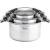 Ist beim Kochen neben Zeitersparnis auch Komfort gefragt, lohnt ein Blick auf den „Woll Concept Induction“-Topf. Der Aluguss-Kochtopf besitzt eine Plasma-Hartgrundbeschichtung und verhindert wie bei Pfannen mit Antihaftbeschichtung das Anbacken von Speisen bei allen Garszenarien, die ohne Zugabe von Fett auskommen. Laut ETM Testmagazin (Ausgabe 11/2014) nimmt Fleisch gleichmäßig Farbe an, ohne am Topfboden festzubacken – weshalb auch die anschließende Reinigung ein Kinderspiel ist. Etwas unangenehm bei nachlässiger Temperaturführung ist das Kochen von Reis: Bei zu viel Hitze kocht das Wasser leicht über und tritt zwischen Deckel und Topf aus. Allerdings ist der Bereich zwischen Topfwand und Griff eng und schwer zu reinigen, darin liegt eine Schwäche des Kochgeschirrs. Im Kontrast dazu steht die laut Test hervorragende Effizienz – eine Empfehlung für Hobbyköche, die auf die Schnelle eine Mahlzeit auf den Tisch bringen möchten.Drei Deckelpositionen: keine Spielerei, sondern sinnvolles Detail