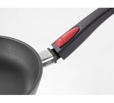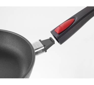 Die Woll Induction Line 1528 IL (28 cm) ist eine beliebte Pfanne für Induktionsherde und wird auf Amazon von über 80 Prozent der Kunden positiv bewertet. Die Antihaftversiegelung aus Hightech-Titanium ist laut Hersteller schnittfest, was Anwender bestätigen. Als klarer Pluspunkt wird in den Rezensionen der abnehmbare Griff beschrieben. Dadurch lässt sich das Modell problemlos in Geschirrspülern und Schränken platzieren. Die Pfanne kann zudem in den Backofen gestellt und als Auflaufform genutzt werden.
