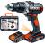 Mit im Lieferumfang dabei ist eine komplette Spannungsversorgung inklusive zweier Akkus. Mit einer Ladedauer von einer Stunde pro 2-Amperestunden-Akku kommt das Lade-System nicht an die leistungsfähigen Systeme der Qualitätshersteller wie Makita oder Bosch Professional heran. Für gute Sicht in schlecht einsehbaren Bereichen sorgt die integrierte LED-Beleuchtung, sicheren Halt sollen die Softgrip-Einlagen im Griffbereich bieten.