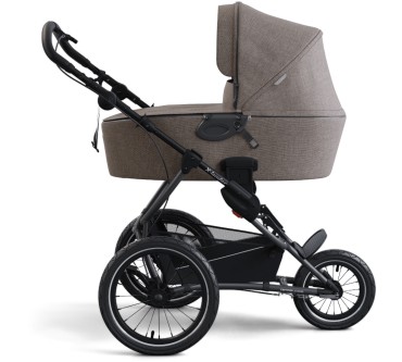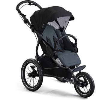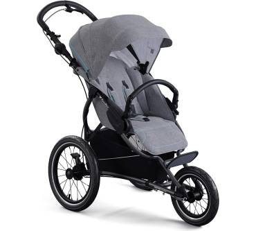 Der Kinderwagen X-Run vom Hersteller X-lander wurde eigens für das Joggen oder Skaten mit Kind entwickelt. Der Hersteller setzt auf eine besondere Trägerkonstruktion mit geneigter Hinterachse. Das soll die Lenkung auf holprigen Untergründen erleichtern. Dazu tragen außerdem die mit Luft gefüllten Reifen bei. Sind Sie rasant unterwegs, bahnen Sie sich mit einer Klingel den Weg. Zudem ist eine Handbremse integriert – praktisch für schnelle Stopps. Komfort für Ihr Kind bieten ein Stoffdach mit UV-Schutz (Faktor 50+), ein Moskitonetz und Lüftungsöffnungen im Verdeck, die vor Hitzestau schützen. Sie stellen wahlweise eine sitzende oder halb liegende Position ein. Der Wagen eignet sich für Kinder bis zu einem Gewicht von 15 Kilogramm beziehungsweise etwa drei Jahre. Für einen Preis von rund 410 Euro wechselt der X-Run den Besitzer. Der Preis passt zur Leistung.
