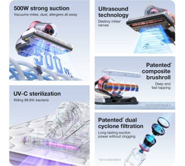 Die UV-Licht-Funktion sorgt für eine zusätzliche Sterilisation, während der Ultraschall Milben auch aus tieferen Schichten der Matratze entfernt. Kunden berichten jedoch, dass die Saugkraft auf der niedrigeren Stufe nicht ausreicht, um tief sitzenden Schmutz zu entfernen, was zur bevorzugten Nutzung der höheren Stufe führt. Einige Nutzer kritisieren auch, dass keine Ersatzfilter im Lieferumfang enthalten sind und die Geräuschentwicklung des Saugers recht hoch ist.