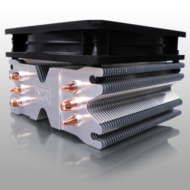 Der Xigmatek Gaia SD1283 ist kompatibel zu Intel 775/1156/1366 und AMD k8/AM2/AM3 Sockeln und spricht damit eine sehr breite Käuferschicht an. Die drei 8 Millimeter dicken Heat-pipes aus Kupfer sitzen ohne die übliche Plate direkt auf dem Prozessor-Die auf und können so die Wärme schneller ableiten, als im herkömmlichen Verfahren. Für die Frischluft ist ein leiser 120 Millimeter Lüfter zuständig, der über Power-Management verfügt und leise (max. 24 dBA) von 800 bis 1.500 Umdrehungen pro Minute macht.