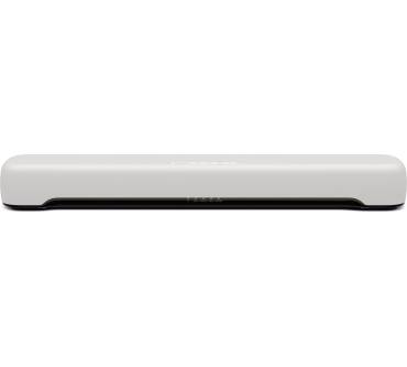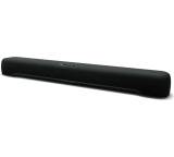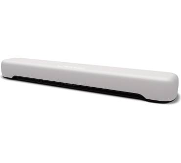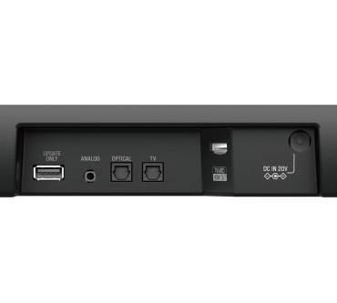 Mit einer Breite von nur 60 Zentimetern und knapp über 6 Zentimeter hoch passt die Soundbar fast überall hin. Der Klang kann angesichts der beiden Breitbandlautsprecher und dem separaten Subwoofer durchaus überzeugen. Kraftvolle Bässe gibt wegen der geringen Größe aber nicht hören. Sehr variabel zeigen sich die Anschlüsse. Für den Fernseher ist HDMI gedacht. Ein zusätzliches Abspielgerät, etwa eine Spielekonsole kann per HDMI aber nicht angeschlossen werden. Dafür sind noch zwei optische Digital-Eingängen und der analoge Eingang via Klinke vorhanden. Dazu gesellt sich noch die Möglichkeit, Musik direkt via Bluetooth zu streamen. Der USB-Anschluss dagegen dient nur Updates. MP3s oder Ähnliches lässt sich hierüber nicht abspielen. Trotz des erwartbar hochwertigen Klangs sind weit über 200 Euro viel für die kleine Soundbar. Das kann etwa die Denon DHT-S216 deutlich unterbieten.
