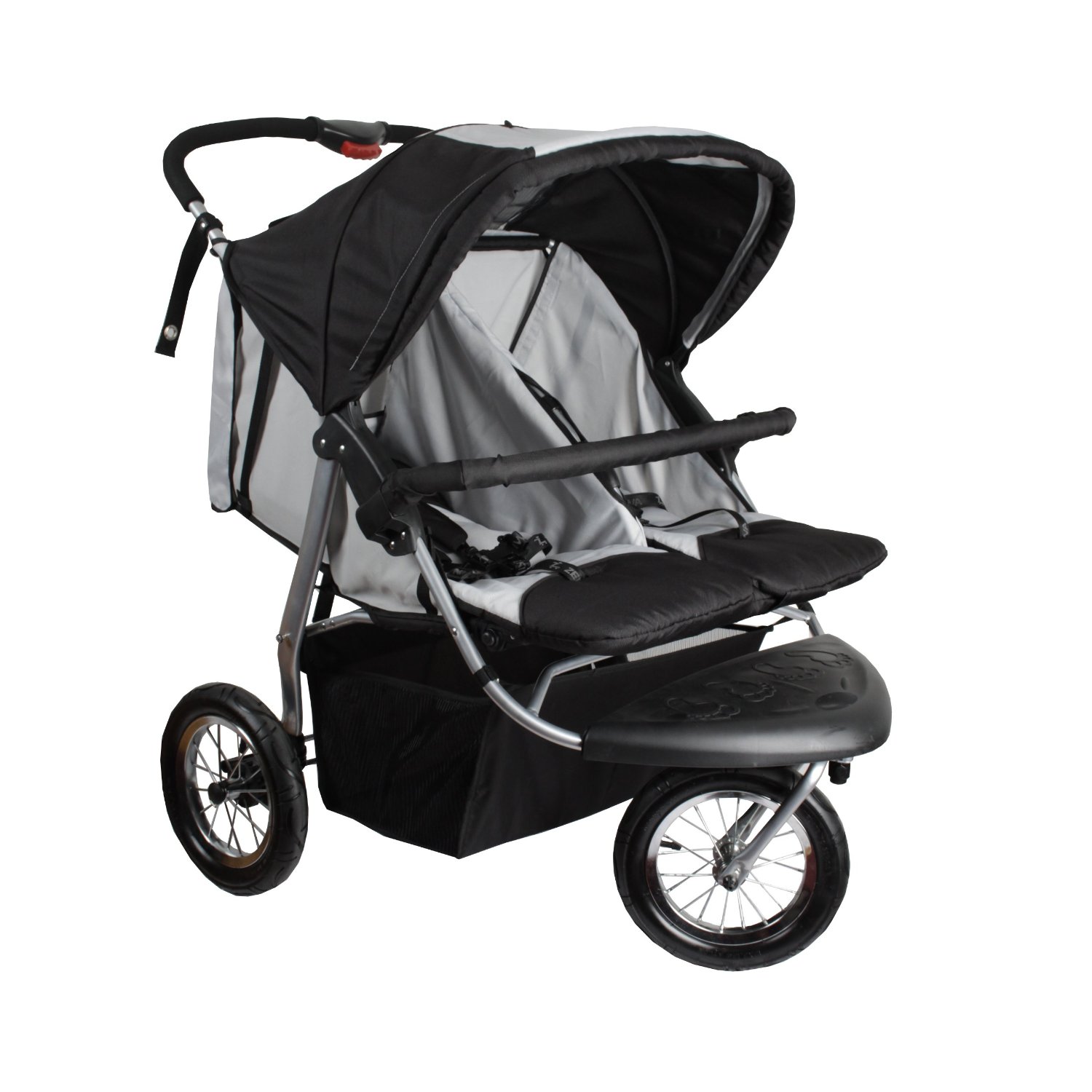 Der DUO präsentiert sich als sportliches Gefährt, in dem zwei Geschwister gleichen oder gering unterschiedlichen Alters auf drei Rädern unterwegs sind. Die 20 Zentimeter großen Lufträder schaukeln so manche Bodenunebenheiten weg, eignen sich also ganz besonders für die Ausfahrt im Gelände oder auf Wald- und Feldwegen. Mit genügend Raum für jedes Kind scheint das Gefährt nicht zu geizen: Auf 31 Zentimetern Sitzbreite und einer Liegefläche von 81 x 31 x 2 Zentimetern finden auch größer gewachsene Kinder ausreichend Platz, was vor allem bei langen Ausfahrten mit höherem Ermüdungsfaktor für die Kleinen ein echter Vorteil ist.