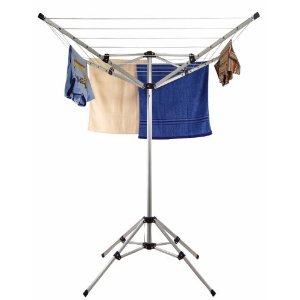 Wäscheständer aus Metall, klappbar und platzsparend, ideal für kleine Wohnungen oder Balkone.