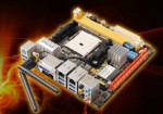 Das neue Mini-ITX-Motherboard ist ausschließlich für die AMD-Llano-APU-Reihe (A8, A6, A4 und E2) ausgelegt und mit dem A75-Chipsatz bestückt. Zwei Speicher-Slots können DDR3-Module bis 1.866 MHz und einer Kapazität bis 8 GByte aufnehmen. Da ja alle AMD-APUs mit einem leistungsfähigen Radeon 6000 Grafikchip ausgestattet sind, bietet das kleine Mainboard gleich mehrere Anschlussmöglichkeiten. Als digitale Ports für die Anzeigegeräte stehen ein DVI- und ein HDMI-Port zur Verfügung und wer noch einen analogen Monitor anschließen möchte, kann dies via DVI-VGA-Adapter tun. Für den Fall, dass die integrierte Radeon 6000er nicht ausreichen sollte, kann man den PCI-Express Slot mit 16 Lanes für eine Aufrüstung nutzen.