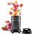 Der kompakte Standmixer mit 2-in1 Mix- und Trinkflasche eignet sich ideal für Smoothies und Shakes. Sie können diese ohne Umfüllen direkt mit zur Arbeit oder zum Sport nehmen. Der 600 Milliliter Behälter ist bruch- und auslaufsicher, BPA-frei und besitzt einen praktischen Trinkdeckel. Dank Vakuumverschluss bleibt Ihr gemixtes Getränk frisch und oxidiert nicht so schnell. Zudem befindet sich eine praktische Messskala für genaues Ablesen der Füllmenge am Behälter. Die Handhabung ist einfach und sicher gestaltet, wie Nutzer bestätigen. Nach festem Einrasten mittels Druckknopf gelingt Ihr Smoothie per Betätigungsschalter in Sekundenschnelle. Verschiedene Geschwindigkeitsstufen gibt es jedoch nicht. Für die effektive Zerkleinerung von Obst und Gemüse sorgen der kraftvolle 300 Watt Motor und die vierflüglige Edelstahlklinge mit bis zu 23.000 Umdrehungen pro Minute. Die rutschfesten Gummifüße gewähren einen sicheren Stand. Bis auf Gehäuse und Mixerdeckel sind alle Zubehörteile zur leichten Reinigung spülmaschinengeeignet.