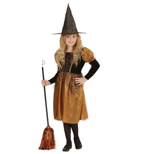 Mit diesem Faschingskostüm verwandelt sich Ihre Tochter in eine kleine Hexe Erhältlich ist das Kostüm für Kinder in der Größe 140 cm Diese Größe entspricht Kindern im Alter von circa 8 bis 10 Jahren Im Lieferumfang enthalten sind das bodenlange Kleid und der spitze Hexenhut Mit passenden Accessoires wie einem Hexenbesen oder einem Zauberstab (nicht enthalten) lässt sich das Halloween Outfit ideal abrunden, Hersteller: Widmann S.r.l.
