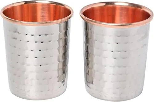 "ANCIENTIMPEX Set bestehend aus 2 gehämmerten äußeren Edelstahl- und inneren reinen Kupferbechern für Ayurveda-Gesundheitsvorteile, 250 ml (8,45 US Fl Oz) Fassungsvermögen