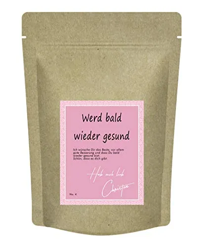 "Werd bald wieder gesund" Teegeschenk für gute Besserung oder als Gesundheit Tee Geschenk für den besonderen Menschen, dem Du Gutes wünscht - von Christea - 70 g Kräutertee im Zip-Beutel