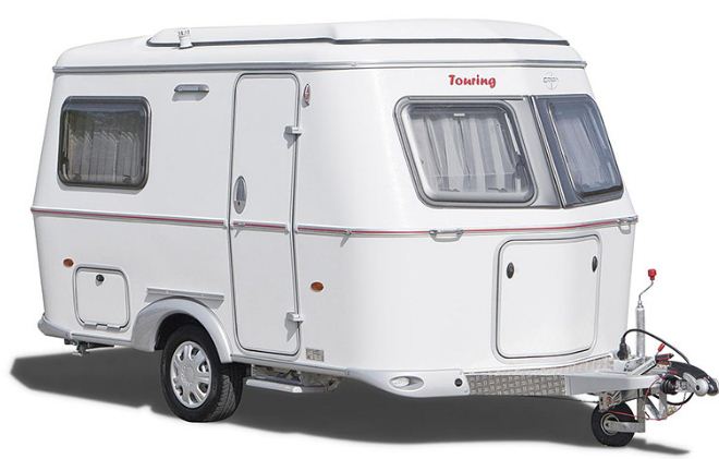 Nicht allein im Eriba-Programm, sondern auch im Wohnwagen-Angebot deutscher Hersteller überhaupt ist die kompakte Baureihe Touring, die bei rund 16.000 EUR startet, ein Unikum. Der Caravan mit zwei bis vier Betten sieht aus, als hätte man einen Oldtimer im Bestzustand vor sich, und tatsächlich ist das Konstruktionsprinzip mehr als 50 Jahre alt. Die typische Keilform mit den zwei Fenstern im Bug ist aber weder altertümlich noch technisch überholt. Sie bedeutet einen geringen Luftwiderstand, den modernere Kreationen im weniger aerodynamischen Schuhkarton-Format so nicht zu bieten haben. Der Hersteller bewirbt den Touring als Kultcaravan für vielreisende Individualisten und bildet ihn auch im Gespann mit einem Mini als Zugfahrzeug ab, um den historischen Charakter zu unterstreichen.