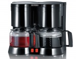 Doch es finden sich auch ein paar wenige Ausnahmen mit Komfortfunktionen im Sortiment. Dazu gehören Modelle mit einem 24-Stunden-Timer, die frühmorgens auf Vorbestellung eine Kanne Kaffee aufbrühen. Erwähnenswert sind ferner die Doppelautomaten, also Modelle mit gleich zwei Filtern und Kannen, wobei Letztere in Glas- sowie in Thermoform angeboten werden. Der Clou dieser Automaten liegt darin, dass in einem der beiden Filter bei Bedarf auch gleichzeitig Tee aufgebrüht werden kann – ideal also für Haushalte mit Kaffee- und Teetrinker also.