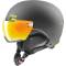 Uvex Wanted Visor Skihelm Schwarz, Größe 58-62, mit integriertem Visier für optimalen Schutz und Sicht beim Skifahren