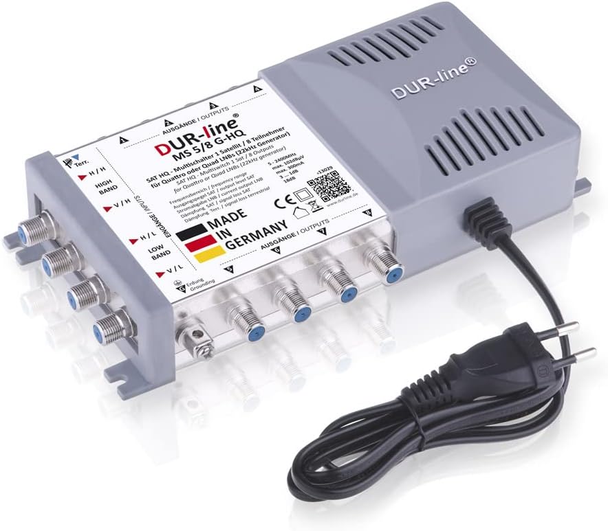 Der DUR-line MS 5/8 G-HQ versorgt bis zu acht Empfangsgeräte unabhängig voneinander mit Sat-Signalen. Im Gegensatz zu receiver-gespeisten Modellen benötigt er ein integriertes 230-Volt-Netzteil. (Bildquelle: amazon.de)