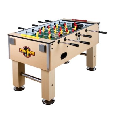 sind in diesem Fall entweder die von den Verbänden zertifizierten Turniertische oder ein Trainings-/Hobbytisch eines renommierten Herstellers die erste Wahl. Erstere liegen meist im vierstelligen Bereich, Geld sparen lässt sich hier, indem nach einem gebrauchten Turniertisch Ausschau gehalten wird. Eine sinnvolle Alternative sind die sogenannten „Homeversionen“ der Turniertische. Sie bieten in der Regel dasselbe Spielgefühl wie die Profitische, sind aber leichter. Auf diesen Tischen lassen sich zu Hause sämtliche Spieltechniken üben, für ambitionierte „Kneipenkicker“ sind sie daher die idealen Trainingspartner. Allerdings liegen diese Tische immer noch meist über 600 EUR, den Griff zu einem Modell eines renommierten Herstellers ist hier nämlich ratsam. Bei den Turnier- und Trainingstischen handelt es sich übrigens meist um sogenannte „Soccertische“, erkennbar an den breiten, geriffelten Füßen der Spielfiguren, die das Einklemmen des Ball erleichtern. Die Figuren der „Kickertische“ hingegen besitzen schmalere, ungeriffelte Füße, weswegen nur die Schiebe-/Ziehtechnik anwendbar ist. Soccertische erlauben daher ein variantenreicheres Spiel, da auf ihnen alle Techniken spielbar sind. Die griffigen Füße kommen außerdem Anfängern entgegen. Wer demnach den Gedanken hegt, sich das Kickerspiel von der Pike auf ernsthaft anzueignen, sollte von Anfang einen hochwertigen Tisch anvisieren. Da ihr Wiederverkaufswert jedoch sehr hoch ist, ist dieser Schritt unter finanziellen Gesichtspunkten nicht sehr riskant.