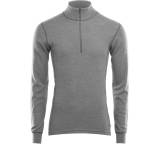„Glattes, leicht kühles Langarmshirt mit toller Haptik und angenehmer Wärmeleistung. 20 cm Rv komplett hinterlegt mit Zip-Garage. Innovativer Materialmix aus Seacell (Algen) und extrem feiner, mulesing freier Merinowolle. Natürliche Gruchshemmung. Anfangs leichtes Färben beim Waschen. Ecolabel & Öko-Tex Zertifikat.“