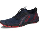 Bei Barfußschuhen handelt es sich nicht um Schuh, in die Sie barfuß schlüpfen können, sondern um sehr minimalistische Laufschuhe. Wenn Sie auf der Suche nach Laufschuhen sind, in denen Sie auch barfuß laufen können, sollten Sie sich mal bei den Triathlonschuhen umsehen. Barfußschuhe hingegen zeichnen sich vor allem durch eine meist extrem flache Mittelsohle aus, die ein barfußähnliches Laufgefühl vermittelt, und heben sich dadurch von Lightweightschuhen, die meist ein dickere Sohle haben, ab. Barfußschuhe sind meist federleicht und sehr flexibel, um die natürliche Beweglichkeit Ihres Fußes zu unterstützen. Durch das minimalistische Design wird Ihnen jedoch weder Dämpfung noch unterstützender Halt geboten. Vor dem Kauf von Barfußschuhen sollten Sie sich daher über deren Vor- und Nachteile im Klaren sein. Immer mehr Läuferinnen und Läufer sind vom unverfälschten Lauferlebnis von Barfußschuhen begeistert. Sie sind aus dünnem Material gefertigt und so angenehm leicht, dass Sie die Schuhe kaum am Fuß spüren – sie vermitteln dadurch eine sockenähnliche Passform und ein Gefühl, als wenn Sie barfuß unterwegs wären. Die außerordentlich geringe Sprengung, also der Höhenunterschied zwischen Fersenbereich und Zehenbox, liegt meist zwischen 0 und 6 Millimetern. So wird ein natürliches, bodennahes Lauferlebnis vermittelt, das dem Barfußlaufen sehr nah kommt. Die extreme Flexibilität der Schuhe unterstützt diese Eigenschaft zusätzlich und sorgt für hohe Bewegungsfreiheit. Nahezu alle bekannten Hersteller von Laufschuhen haben mittlerweile minimalistische Runningschuhe im Sortiment. Neben den klassischen Zehenschuhen mit einzelnen Kammern für jeden Zeh von Vibram hat sich vor allem die Free-Reihe von Nike als Liebling unter Laufsportenthusiasten etabliert. Aber auch Merrell oder Vivobarefoot sind beliebte Hersteller von Minimalschuhen. Seit einigen Jahren machen junge Hersteller aus Deutschland, wie Leguano oder Zaqq mit ihren Barfußschuhen durch Innovation und Nachhaltigkeit auf sich aufmerksam und sind bei Kundinnen und Kunden sowie Testern beliebt.