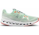 „... noch weicher ... als sein Vorgänger. Die markentypische Cloudtec-Dämpfung wurde laut Hersteller computeroptimiert und ist nun deutlich komfortabler, wie unsere Tester bestätigen. Aber ‚auch die Reaktivität ist höher‘, so eine Läuferin. Die ausgeprägte Rocker-Konstruktion mit optimierter Energierückführung sorgt für ein sehr dynamisches Laufgefühl. Und da die Sohle des Schuhs nun nach unten hin geschlossen ist, setzen sich keine nervenden Steinchen mehr zwischen die Clouds. ...“