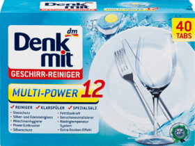 Testsieger wurden zwar die K-Classic Geschirr-Reiniger-Tabs All in 1, die Sie bei Kaufland erhalten, und auch bei Aldi Süd gibt es noch etwas besser getestete Tabs (Alio Complete), doch die Multifunktionstabs Multi-Power 12 von dm/Denk mit teilen sich Platz 3 auf dem Siegerpodest mit den Eigenmarken von Edeka, Netto und Norma.