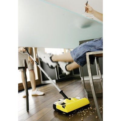 Oft ist es bequemer, den Akkubesen zu schwingen, statt sich mit dem Staubsauger abzumühen. Der Kärcher K 55 ist laut Hersteller nicht nur schnell, sondern kann es auch mit Tierhaaren aufnehmen. Auch mit Ecken und Kanten hat das knapp 2 Kilogramm leichten Gerät keine Schwierigkeiten. Die besondere Konstruktion erlaubt es, bis auf einen Millimeter an der Wand Staub zu fegen. Das Gerät lässt sich durch einen Fußschalter leicht einschalten, durch den Teleskopstiel passt sich der Besen auf die Größe des Nutzers an. So ist ein bequemes Arbeiten möglich. Ist die Arbeit beendet, kann der Kärcher platzsparend in eine Wandhalterung eingehängt werden.