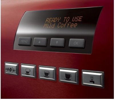 Der Philips HD 5720 kommt ganz ohne Ecken und Kanten aus. So ist die rote Maschine ein wahrer Augenschmaus für die Küche. Das Gehäuse ist mit einer Beschichtung versehen, die laut Hersteller allen Fingerabdrücken trotzt. Das erleichert die Reinigung. Zusätzlich zum guten Aussehen kommt die komfortable Bedienung. Die wird über ein großes, schön geschwungenes Display geregelt. Die Menü-Struktur ist einfach aufgebaut, dem Nutzer wird jeder Schritt angezeigt. Auch vorgenommene Kaffeeeinstellungen können hier gespeichert werden. Doch das Display informiert den Nutzer nicht nur darüber, was die Maschine gerade tut, sondern auch, wie lange sie dafür benötigt: Ein Balken zeigt den Fortschritt der Aktion an.