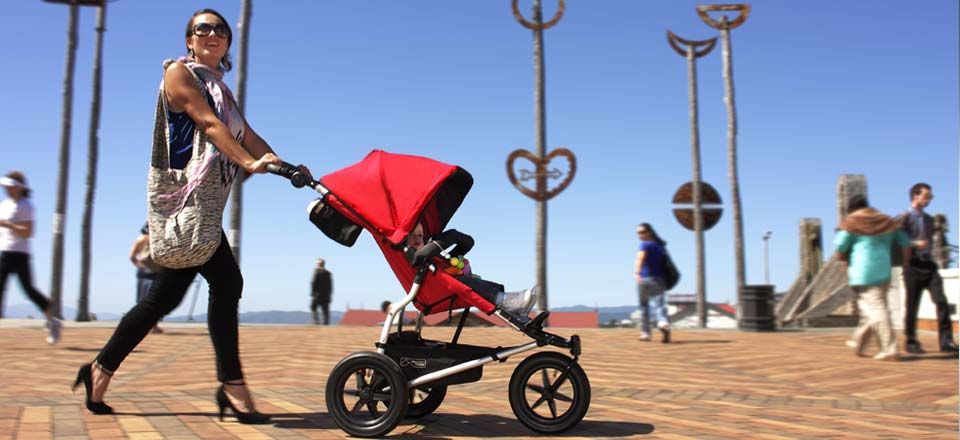 Mit etwas über zehn Kilogramm zählt der Mountain Buggy zu den leichtesten Modellen auf dem Markt. Mit den 12 Zoll großen, luftgefüllten Rädern lässt sich der Wagen ohne größere Umstände durchs Gelände lotsen, aber auch bei Kopfsteinpflaster oder im Winter bei Schnee und Matsch fährt er sich um einiges leichter als andere Kinderwagen. Das bewegliche Vorderrad kann für diese Fälle arretiert werden, andernfalls wiederum sorgt es für eine überragende Wendigkeit, wie zahlreiche Käufer des Mountain Buggy immer wieder besonders betonen – er lasse sich nahezu mühelos mit einer Hand beliebig drehen und wenden.