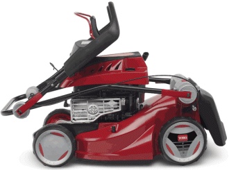 Die Zeiten der sperrigen und unansehnlichen Benzinrasenmäher sind passé: Mit dem Toro Emotion 43 wird Mähen schöner, Verstauen einfacher und Pflege komfortabler. Da möchte man selbst als Frau nicht mehr nur zum Entspannen auf den Rasen. Aber das schicke Gefährt macht nicht nur auf dem Rasen was her, sondern auch in der Garage, denn sein Platzbedarf ist erstaunlich gering: Zusammengeklappt ist der Emotion gerade noch 97 x 48 x 60 cm groß (siehe Foto). Vor dem Verstauen sollte ein Benzinrasenmäher allerdings gesäubert werden. Das soll beim Emotion besonders einfach sein, denn an der glatten Innenfläche und dem Aluminiumgehäuse bleiben laut Hersteller kaum Rückstände hängen.