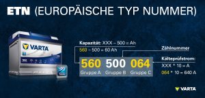 Beispiel einer ETN (European Type Number) für Autobatterien.