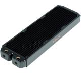 Der technische Aufbau eines geschlossenen Kühlsystems ist denkbar einfach gestaltet und wir „am Stück“ geliefert. Als Hauptkomponenten kann man einerseits den Radiator mit einer einfachen oder beidseitigen Belüftung ausmachen und die Baseplate mit integrierter Pumpe. Beide Teile sind durch einen Zulauf- und einen Ablaufschlauch miteinander verbunden. Die Bodenplatte sollte aus reinem Kupfer gefertigt sein und innen ein weitverzweigtes Kanalsystem zur Oberflächenvergrößerung besitzen. Dadurch wird ein schneller Abtransport der warmen Flüssigkeit gewährleistet. Diese Weiterbeförderung der Kühlflüssigkeit wird von der integrierten Pumpe gleistet, die ihre Stromversorgung direkt vom Mainboard bezieht. Je nach Anschluss kann hier die Drehzahl mittels PWM-Signal (4-Pin-Anschluss für Pulsweitenmodulation) oder bei einigen Modellen auch manuell gesteuert werden. Die eigentliche Kühlung findet dann im Radiator statt. Hier unterscheiden sich die Modelle nicht nur in ihrer Gesamtgröße, sondern auch in der Anzahl der Kanäle und Kühllamellen. Die kleinsten Ausführungen arbeiten mit 80 Millimeter großen Lüftern, die von 100er und 120er im Einzellüfteraufbau gefolgt werden. Zwei Lüfter nebeneinander erreichen meist 240 und drei Lüfter 360 Millimeter. Wenn sich die großen Radiatoren nicht im Inneren (meist Deckelbereich) des PCs unterbringen lassen, muss man die Schläuche nach außen verlegen, was aber ein Öffnen des Kühlsystems zur Folge hätte. Deswegen beschränken sich die meisten Anwender auf eine Maximalgröße von 240 Millimetern. Generell lassen sich die Radiatoren beidseitig belüften. Einige wenige Modelle sehen sogar eine Erweiterung auf ander Kühlbereich vor. Einen Ausgleichsbehälter benötigt man bei den Komplettwasserkühlungen nicht.