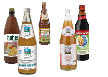 Testbericht über 26 Apfelsäfte„Nur 6 der 26 Produkte im Test sind gut – alles naturtrübe Direktsäfte. Apfelsaft aus Konzentrat ist bestenfalls befriedigend.“ Testumfeld: Im Vergleichstest der Stiftung Warentest befanden sich insgesamt 26 Apfelsäfte, darunter 16 Direktsäfte und 10 Säfte aus Konzentrat. Geprüfte Kriterien waren jeweils das sensorische