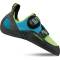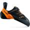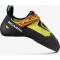 asymmetrisch geschnittener Schuh presst den Fuß passgenau in die Schuhspitze. Kletterer können so die meiste Kraft auf den großen Zeh übertragen und entwickeln dadurch ein gutes Feingefühl beim Antreten auf kleinen Spalten und Felsvorsprüngen.